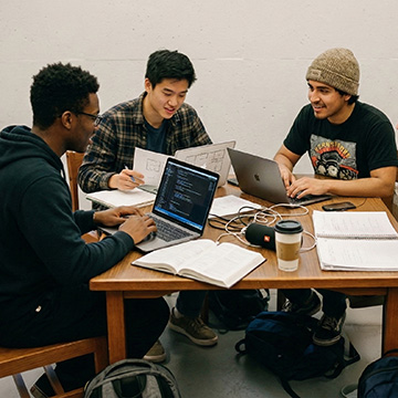 Three Students Study at Table