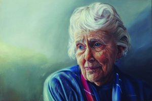 Pictured: “Marion” / Oil on canvas by Michele Norman is being featured with her solo exhibition at South Suburban College August 27 – October 10, 2019.