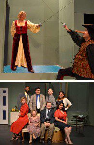 The hopeful actors sprint through the tangle of confusion to produce a woefully misbegotten mixture of two different plays in their hoped-for presentation piece, and in the play’s climactic scene, manage to set everything right by still more series of coincidences and mishaps.