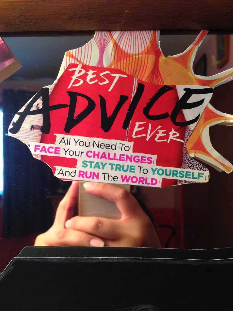 The only issue now – I didn’t have enough ideas or photos to fill an entire poster board. The only magazines that ever came through the mail were Better Home, Seventeen, Momentum, Women’s Health and Elle. We still have no idea how Elle started arriving (insert spooky noises). And let’s be serious, I was not about to waste money purchasing magazines only to watch myself cut up my money. I also did not want to waste ink by printing, so flipping through magazines became my only choice. As I began to flip, I noticed myself more drawn to sayings, rather than pictures.